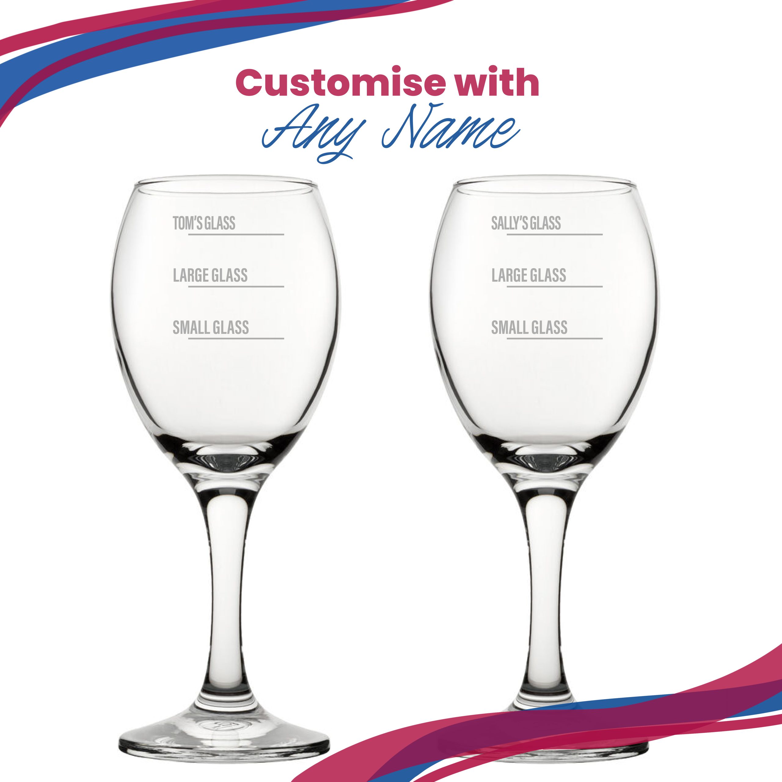Personalised Engraved Pure Wine Glass with Name’s Glass Bold Measurements Design, Customise with Any Name