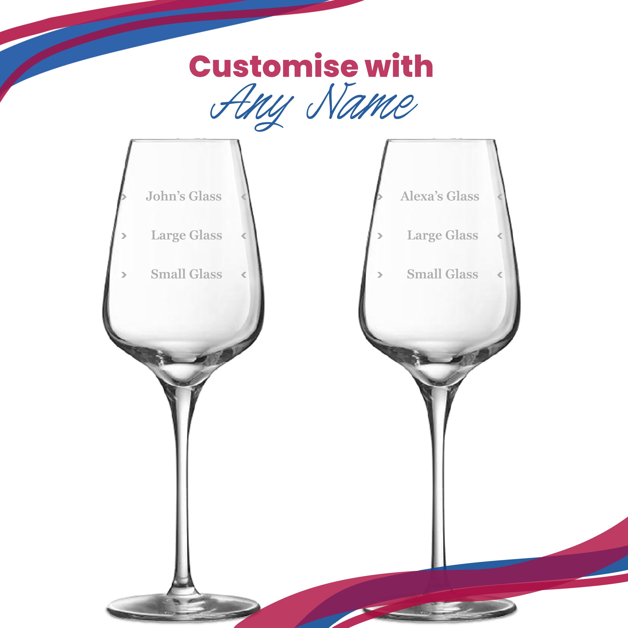Personalised Engraved Sublym Wine Glass with Name’s Glass Serif Measurements Design, Customise with Any Name